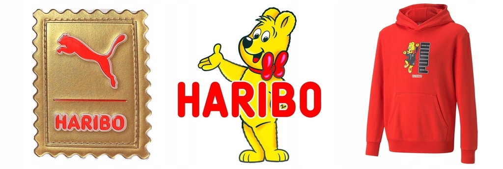 - Logo Puma i wesoły miś Haribo