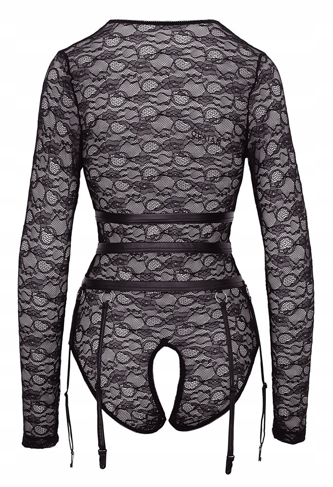 Niezwykle eleganckie i seksowne body wykonane w całości z delikatnej koronki. Trzy paski pięknie podkreslają talię. Regulowane paski do pończoch gwarantują, że pończochy nie będą się zsuwać.