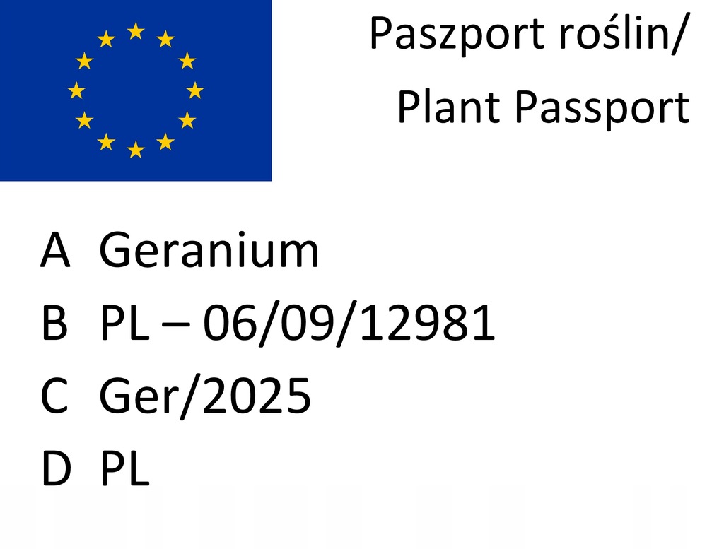 Oświadczam, że zgodnie z Rozporządzeniem Parlamentu Europejskiego i Rady (UE) 2016/2031 z dnia 26 października 2016 r. w sprawie środków ochronnych przeciwko agrofagom roślin, do jednostki handlowej roślin lub nasion dołączony jest paszport.