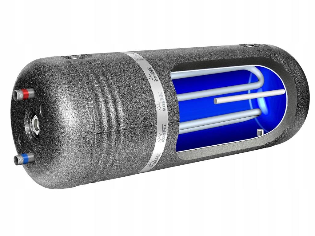 Wymiennik poziomy z wężownicą idealnie nadaje się do współpracy z kotłami grzewczymi. Dzięki zastosowaniu rozpraszacza wody ograniczysz mieszanie się wody ciepłej z zimną, tym samym zyskasz optymalny rozkład temperatury w zbiorniku. Wymiennik wyposażony jest we wskaźnik temperatury wody w zasobniku.