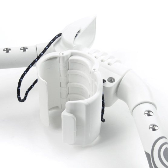 - Posiada zapięcie na podwójny pin chroniący przed zapiaszczeniem oraz ruchomą głowicę, która zapobiega złamaniu masztu.