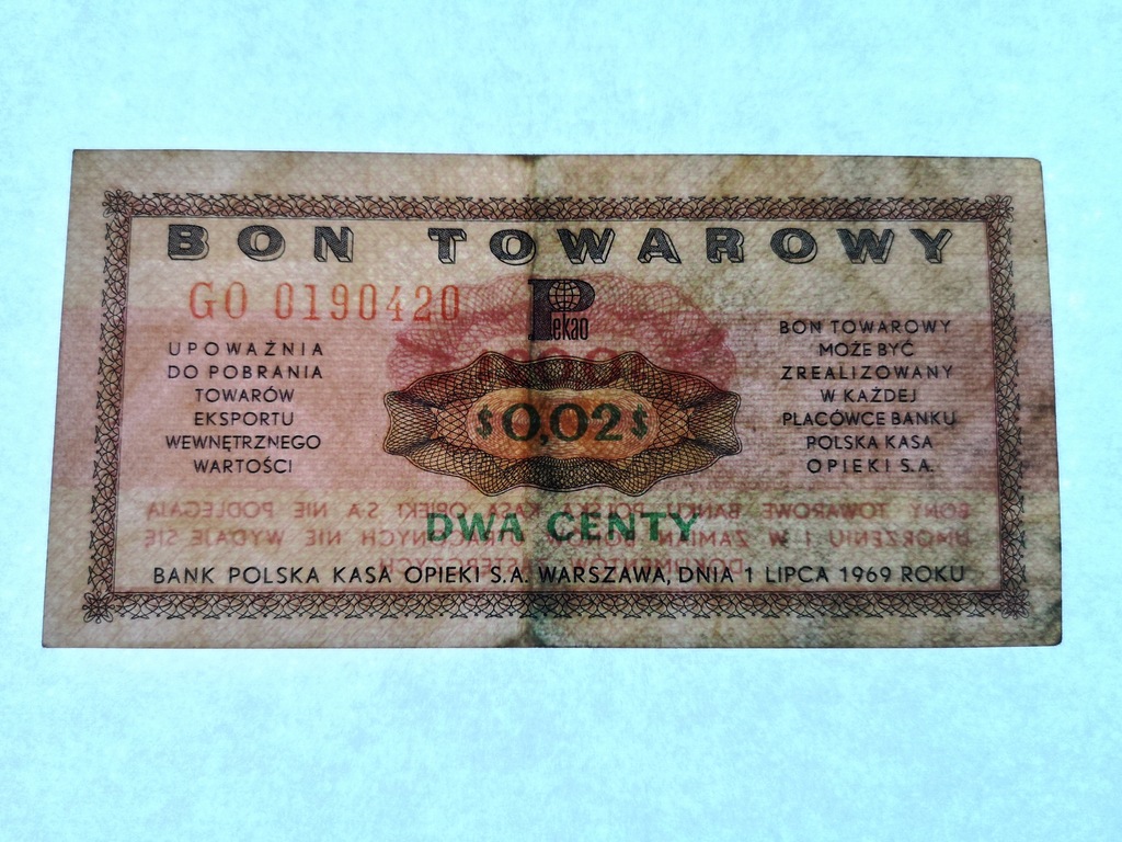 Bon towarowy PKO 2 centy seria GO p.924