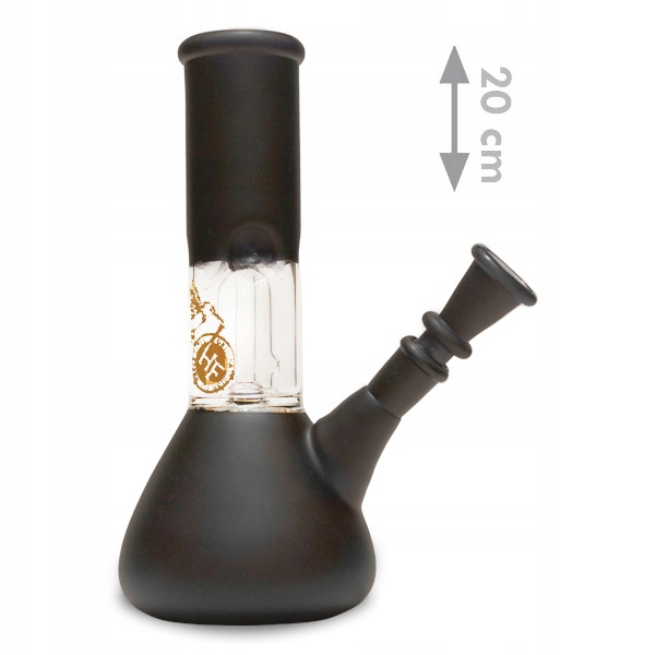 Bongo zostało wykonane z grubego szkła hartowanego. Fajka zawdzięcza nowoczesny design matowym, czarnym wykończeniom. Średnica podstawy 8,5cm.