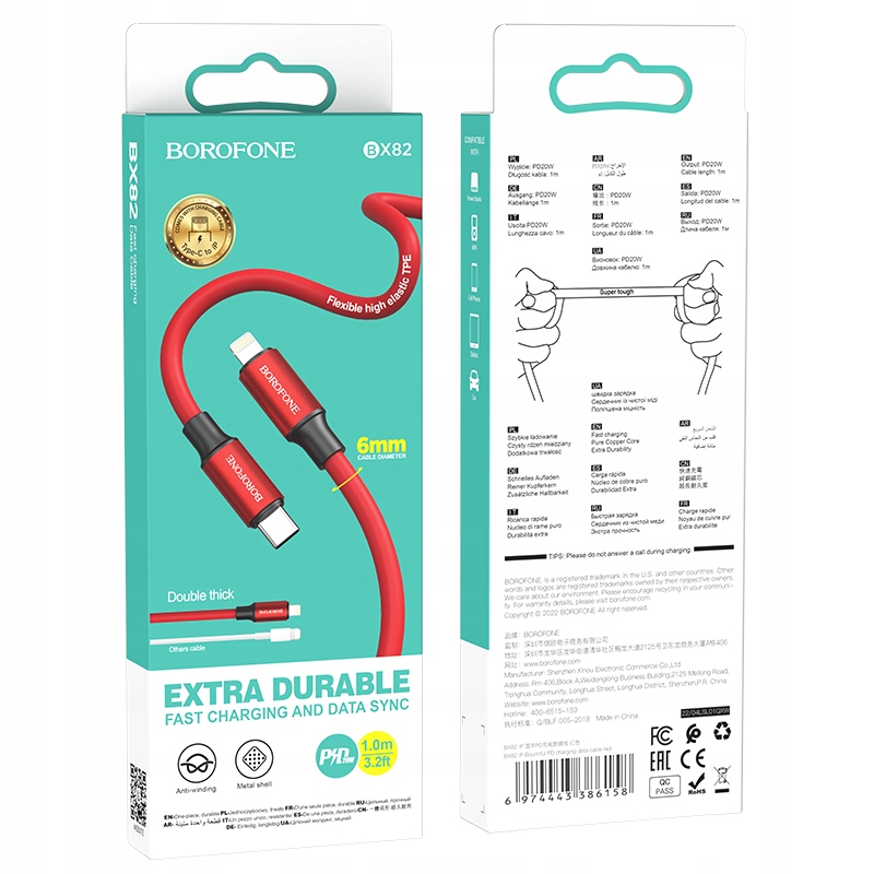 Borofone Kabel BX82 Bountiful - Typ C na Lightning - PD 20W 1 metr czerwony (17544281713)