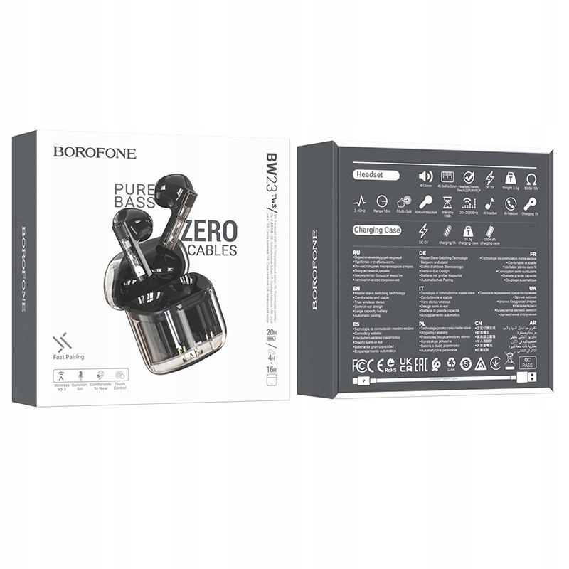 Borofone Słuchawki Bluetooth TWS BW23 Crystal Bean Transparent Edition Czarne
