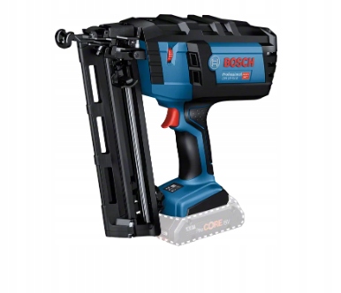 Model GNH 18V-64 M Professional oferujący tryb strzału pojedynczego i seryjnego to mobilne rozwiązanie do szybkiego i precyzyjnego mocowania różnego rodzaju materiałów. Gwoździarka jest obsługiwana bez użycia kompresora, węża powietrza czy też drogich nabojów gazowych – wystarczy włożyć akumulator i można przystąpić do pracy. Gdy magazynek gwoździ jest pusty, blokada suchych strzałów chroni obrabiany materiał przed uszkodzeniem. Model GNH 18V-64 M jest wyposażony w intuicyjny interfejs użytkownika (HMI), który ułatwia aktywację trybów strzału.