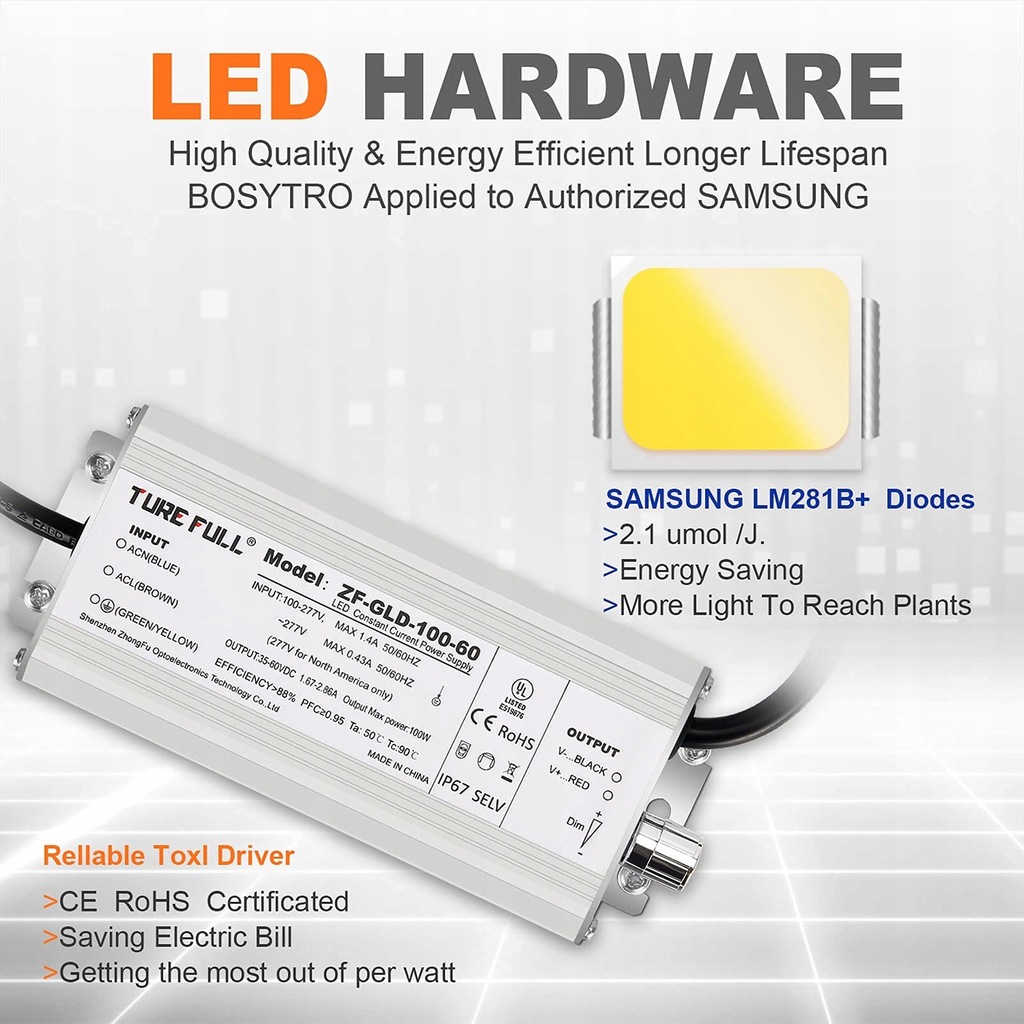 - 【CICHY I NIEZAWODNY】 Konstrukcja bez wentylatora zapewnia cichy wzrost. Dzięki zastosowaniu wysokiej jakości chipów LED firmy Samsung i niezawodnych sterowników ściemniania, światło jest również wykonane z płytki LED, która jest pasywnie chłodzona przez aluminiowy radiator o dużej powierzchni., zwiększając intensywność światła o 30%, dzięki czemu rośliny mogą uzyskać więcej energii bez spalania roślin na maksymalnej przestrzeni.