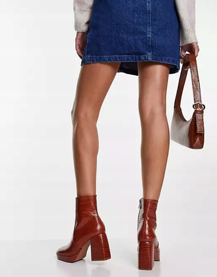 BOTKI DAMSKIE BRĄZOWE NA OBCASIE WZÓR WĘŻA 36
