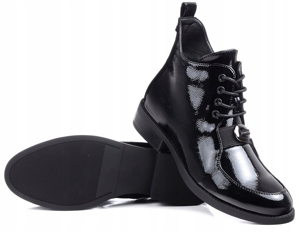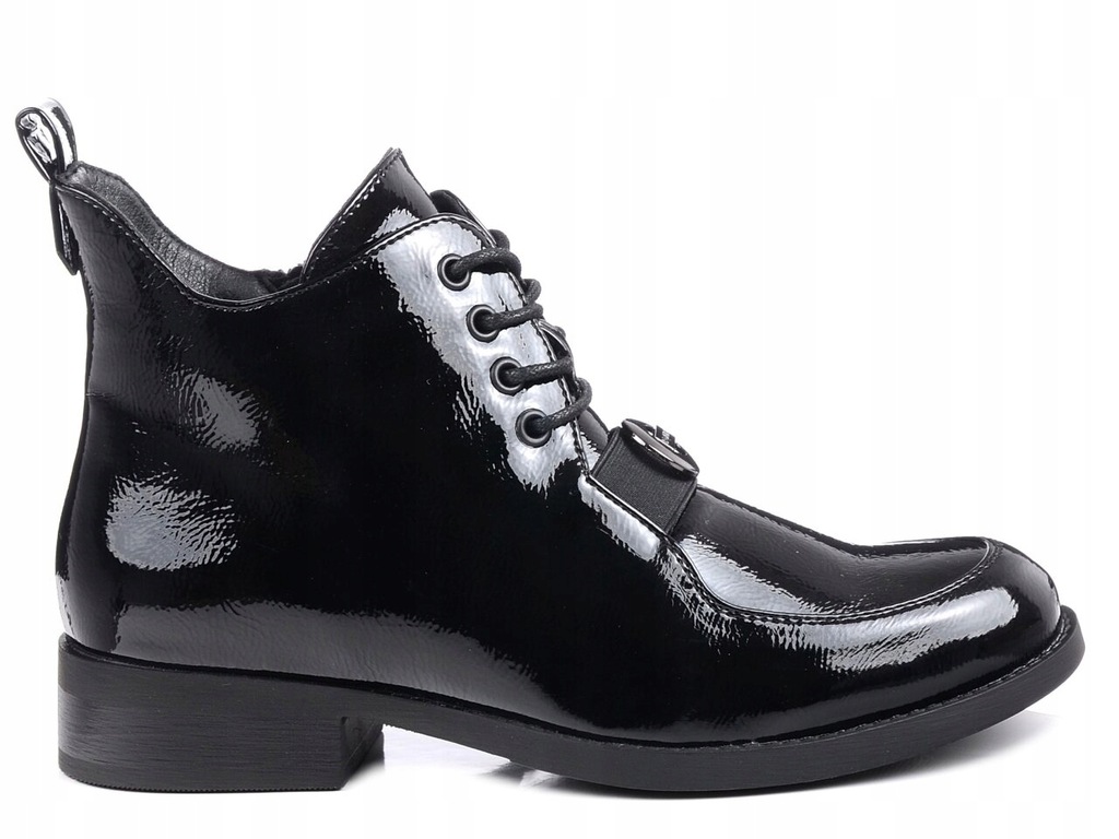 - Eleganckie botki damskie marki S.Barski®, wykonane ze skóry ekologicznej lakierowanej.