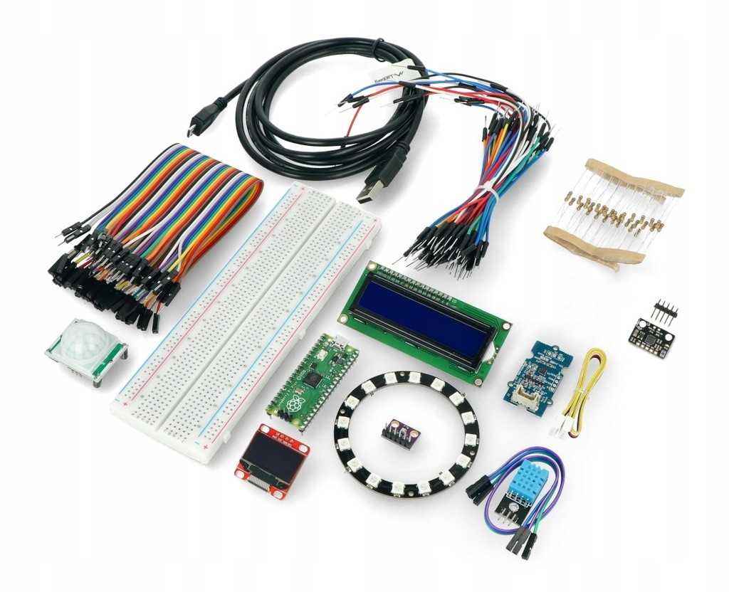 Zestaw składający się z Raspberry Pi Pico, czujników oraz modułów. W oficjalnych plikach SDK dla języka C/C++ oraz Python można znaleźć przykłady podłączenia oraz gotowe kody do rozpoczęcia przygody z programowaniem oraz elektroniką na podstawie modułów z zestawu. W skład zestawu wchodzi między innymi: Raspberry Pi Pico, płytka stykowa, zestaw przewodów, czujnik temperatury i wilgotności, czujnik ciśnienia, akcelerometr, wyświetlacz alfanumeryczny oraz OLED, pierścień LED.
