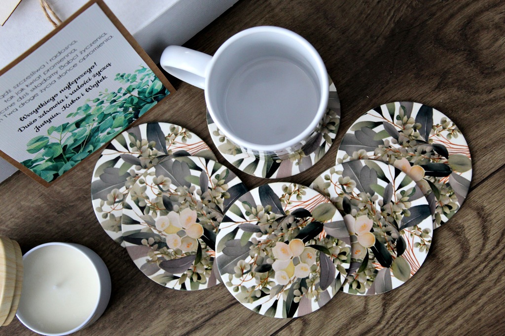 - 6 podkładek pod kubki/szklanki