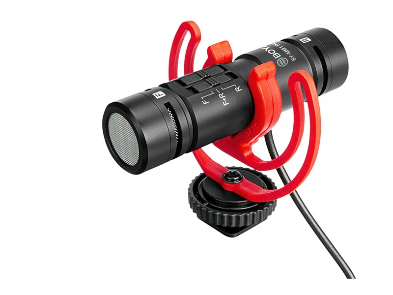 Udoskonalona wersja świetnego mikrofonu BY-MM1 Pro to połączenie 2 mikrofonów, które umożliwia rejestrowanie zarówno wypowiedzi, jak i dźwięków otoczenia. Wersja ta doskonale sprawdzi się podczas realizowania np. vloga podróżniczego czy reportaży. Istnieje możliwość wyboru czy dźwięk ma być nagrywany z przodu, z tyłu czy przez oba mikrofony jednocześnie. Wybór kierunku rejestracji odbywa się za pomocą prostego w obsłudze 3-pozycyjnego przełącznika. Kompatybilny z wieloma urządzeniami Jeżeli chcesz zadbać o wysoką jakość audio w Twoich produkcja wideo, to mikrofon pojemnościowy Boya BY-MM1 przyjdzie Ci z pomocą. Mikrofon ten obsługuje szerokie pasmo częstotliwości. Został stworzony z myślą o współpracy z urządzeniami mobilnymi, kamerami, aparatami, dyktafonami, komputerami, laptopami i rejestratorami. Może także współdziałać ze sprzętem Apple. Port słuchawkowy Mikrofon posiada złącze słuchawkowe, które umożliwia monitorowanie dźwięku w trakcie realizacji. Złącze 3,5 mm zapewnia wysoką kompatybilność z różnymi modelami słuchawek. Wysoka jakość nagrań Mikrofon posiada złącze TRRS jack 3,5 mm. Niewielkie rozmiary mikrofonu sprawiają, że możesz go z łatwością wykorzystywać podczas realizacji różnorodnych zadań. Lekka aluminiowa konstrukcja zapewnia nie tylko mobilność, ale również wytrzymałość. Co więcej mikrofon nie zwiększa specjalnie wagi zestawu wideo, stąd nie obniża komfortu pracy operatora. Boya BY-MM1 Pro jest zasilany z urządzenia rejestrującego, co oznacza, iż nie ma konieczności stosowania dodatkowych źródeł zasilania. W zestawie z mikrofonem znajdują się osłona przeciwwietrzna i uchwyt redukujący wstrząsy.
