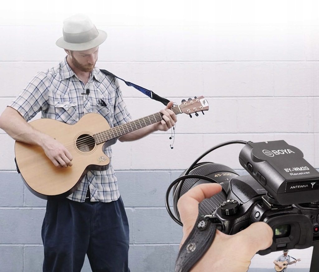 Mikrofon bezprzewodowy wielokierunkowy BY-WM2G 2,4 GHz lavalier Microphone oferuje doskonałe rozwiązanie do nagrywania czystego dźwięku i rejestracji wideo za pomocą aparatów DSLR, kamer wideo, aparatów telefonicznych itp. System mikrofonów bezprzewodowych umożliwia nagrywanie dźwięku bez ograniczeń kabla, obsługuje transmisję sygnału bezprzewodowego na odległość do 15 m, idealny do nagrywania wideo, wymagającego poruszania się i nagrywania z odległości; Omni-dźwiękowy dźwięk, zaprojektowany do użytku wokalnego lub wideo, zapewnia użytkownikowi klarowne i dokładne doświadczenie nagrywania głosu, idealny do rejestracji w każdej sytuacji; Kompatybilny design, lekki nadajnik i odbiornik z gniazdem hot shoe i klipem do łatwej instalacji, idealny do wywiadów, rejestracji wideo ślubnych dla profesjonalistów i hobbystów; Funkcjonalna obsługa smartfona, tabletu, lustrzanki cyfrowej, kamery wideo, kamery GoPro Hero 3 3+ 4, rejestratora dźwięku, PC i innych urządzeń audio. [Uwaga: iPhone 7 7s, 8 X lub nowszy, proszę używać adaptera oświetlenia jack 3,5 mm do podłączenia (adapter nie jest dołączony do zestawu).