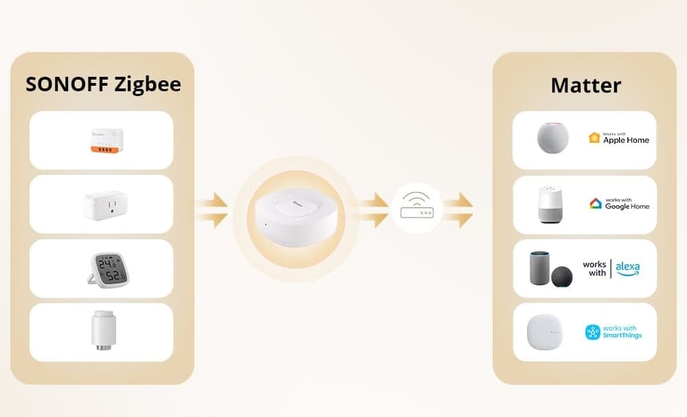 ZBBridge-U umożliwia integrację urządzeń Zigbee z ekosystemem Matter, co pozwala na ich współpracę z różnymi platformami smart home Dzięki temu możesz sterować swoimi sprzętami za pomocą Siri, Google Assistant czy Amazon Alexa, tworząc spójny i zintegrowany system igentnego domu.
