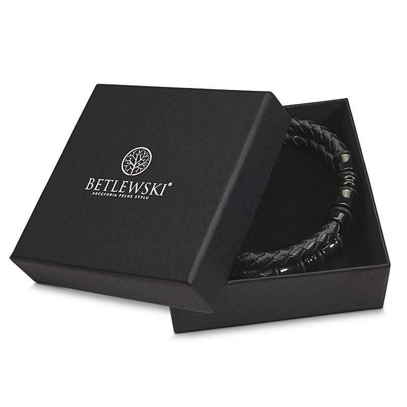 Materiał, z którego wykonana jest bransoletka, zapewnia jej nie tylko trwałość, ale także przyjemność w dotyku. Ciesz się poczuciem luksusu, które daje noszenie tej wyjątkowej biżuterii. Czarny kolor dodaje jej charakteru i sprawia, że jest uniwersalnym wyborem, który bez problemu zestawisz z innymi elementami swojej garderoby.