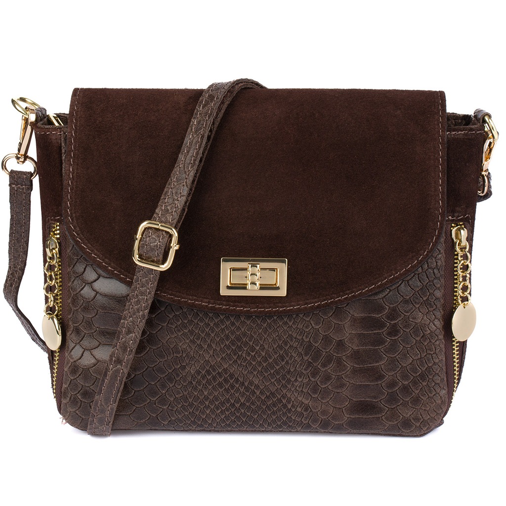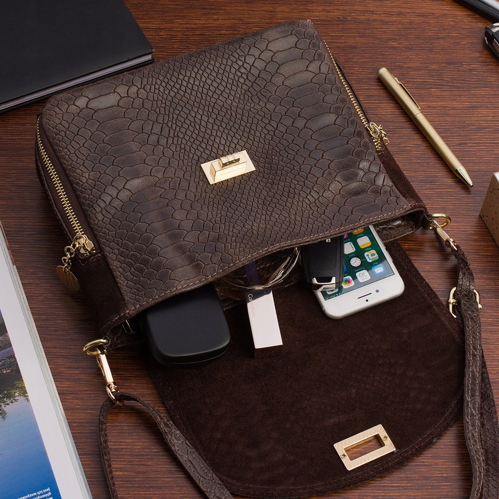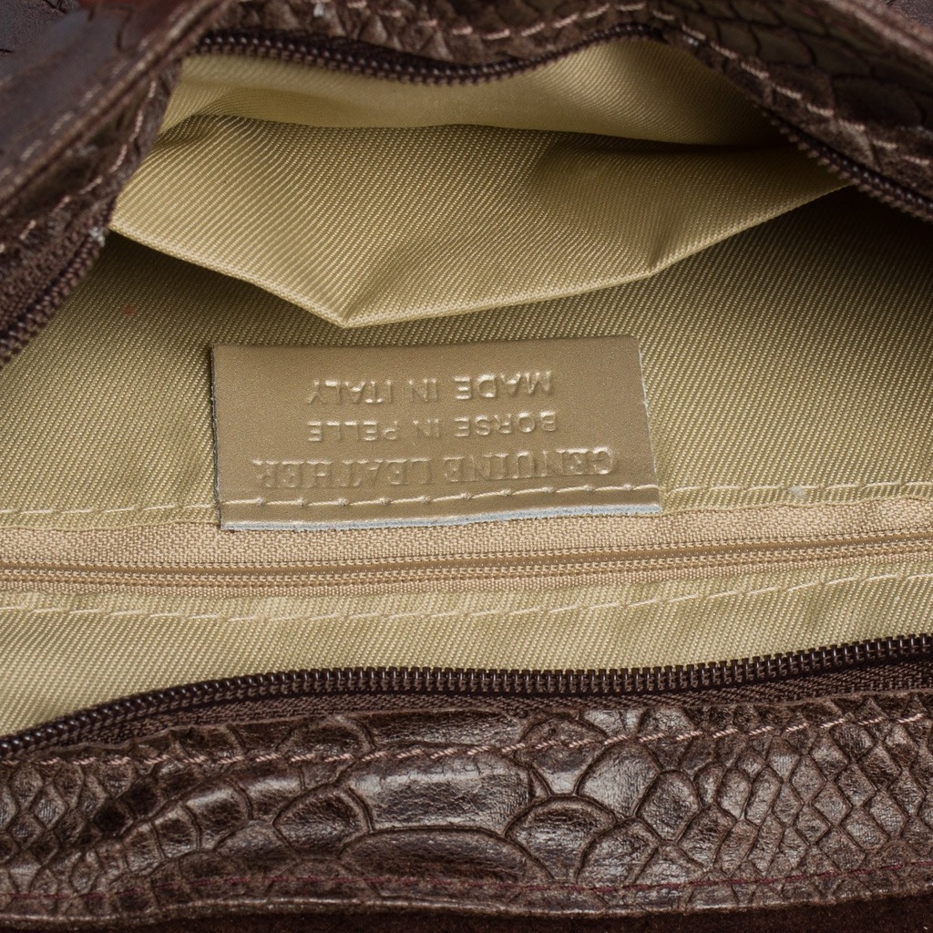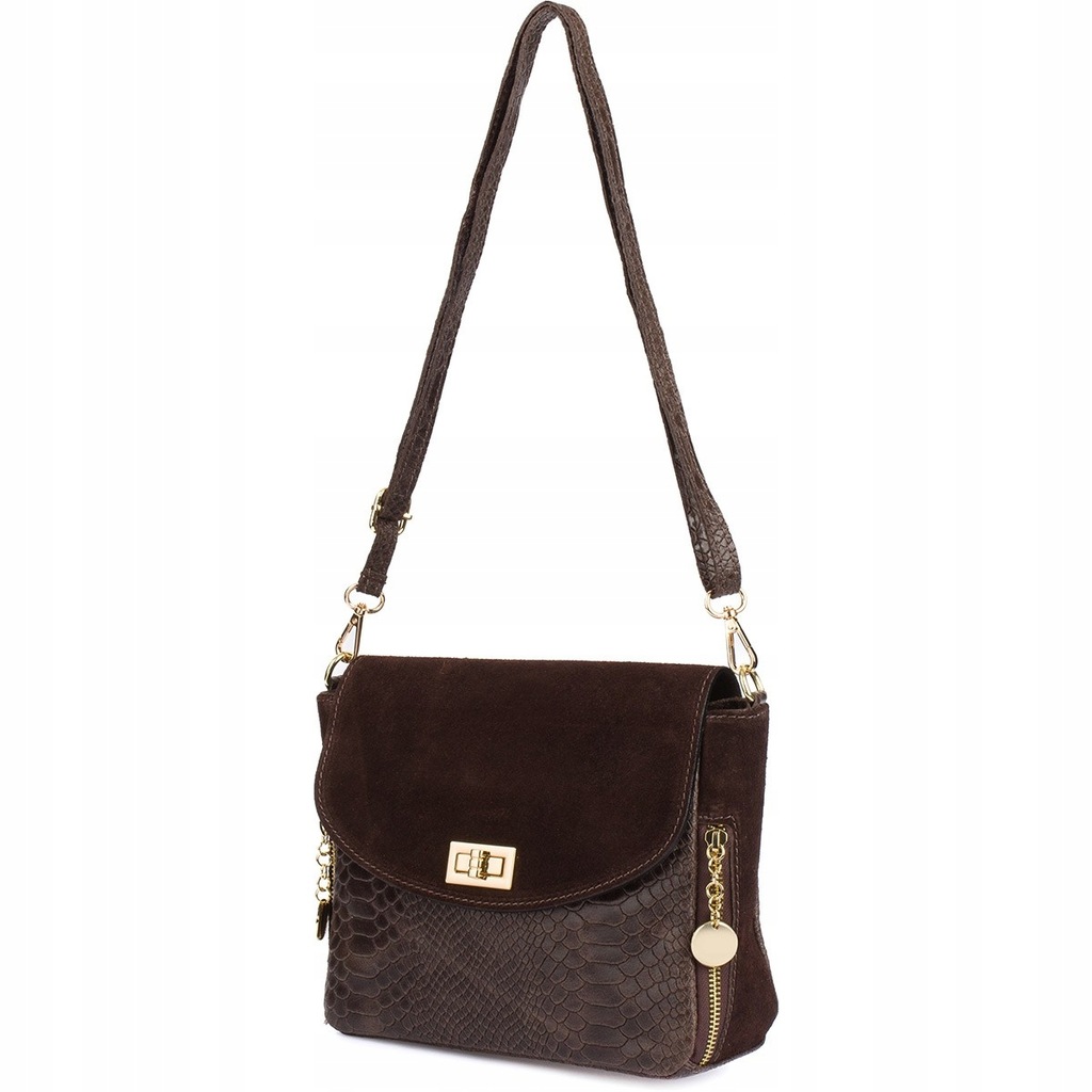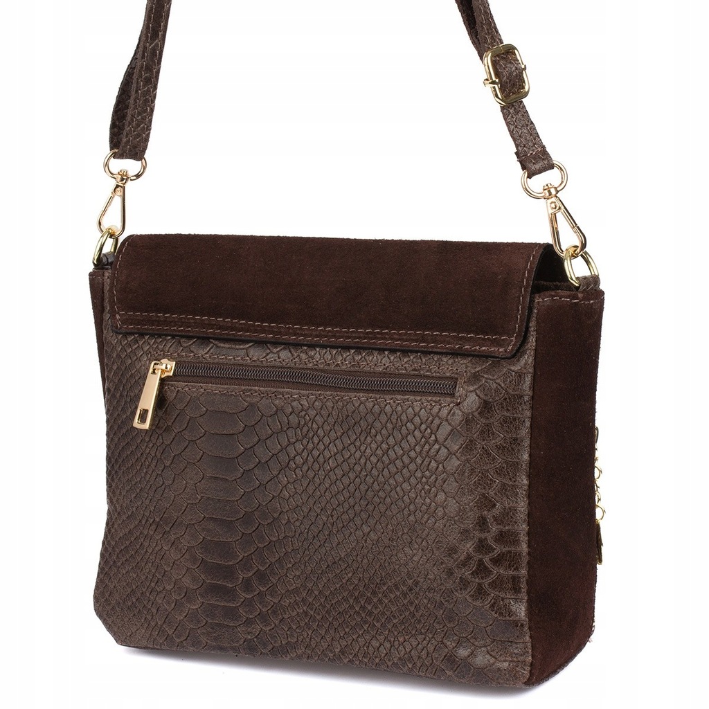 Brązowa Włoska Torebka Skórzana listonoszka skóra węża T96