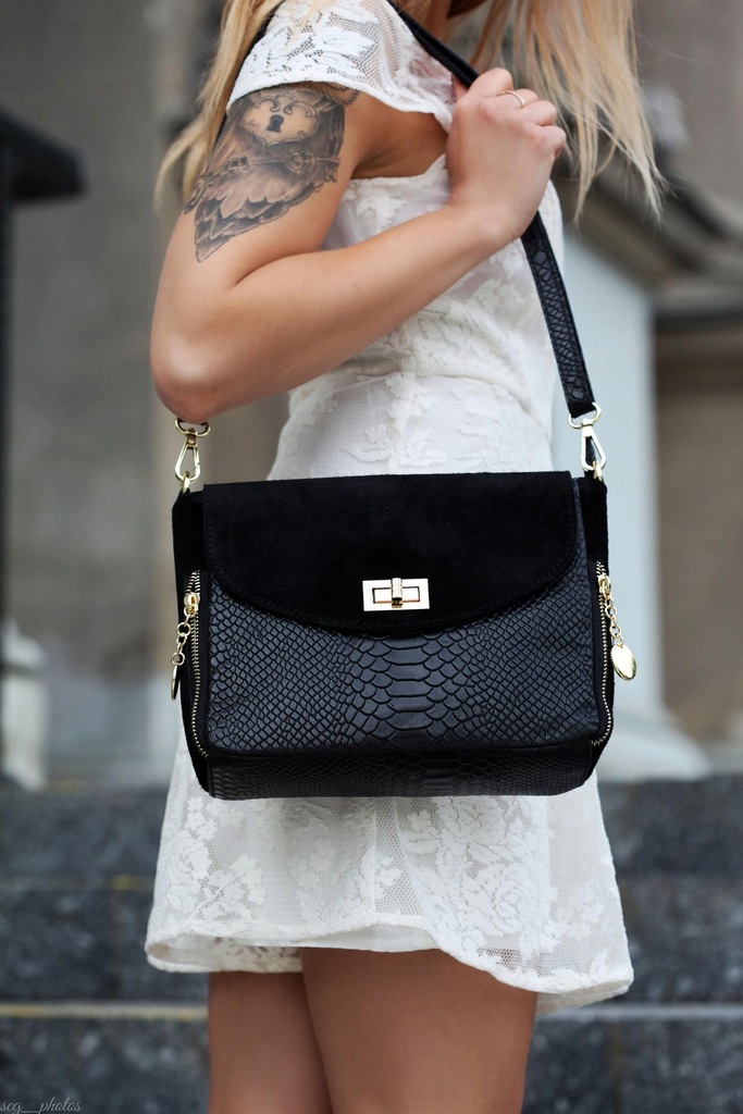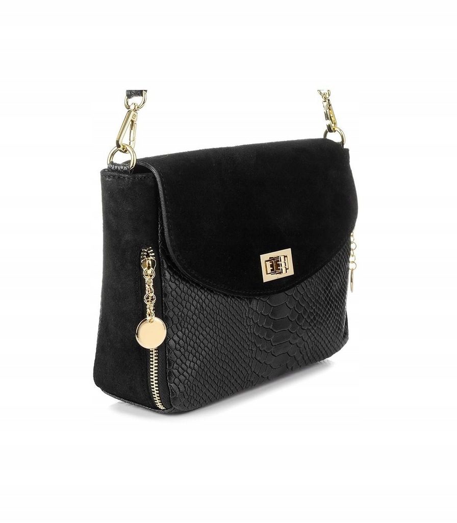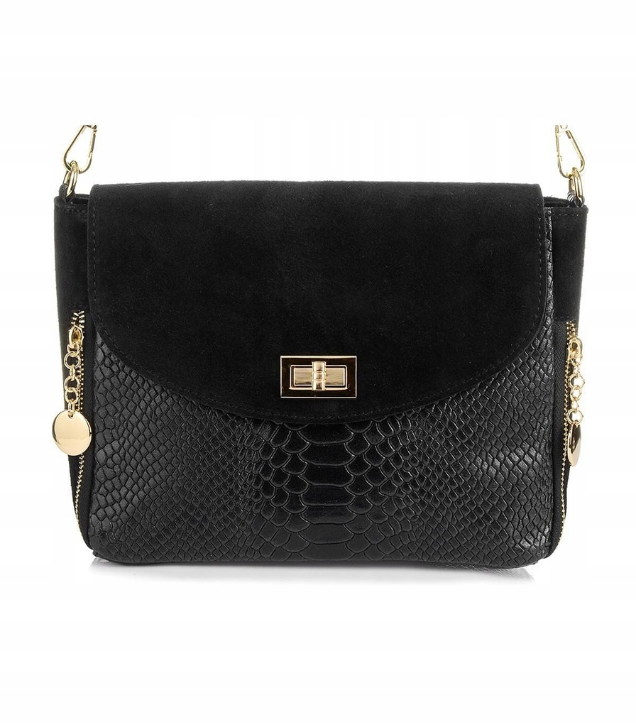 - Dodatkowe informacje:Torebka wykonana niezwykle starannie, we Włoszech, z wysokiej jakości skóry naturalnej.Stylową i modną ozdobę stanowią złote zamki z brelokami po bokach torby.