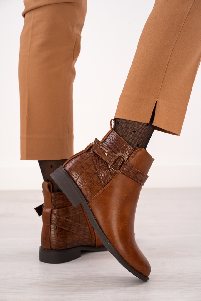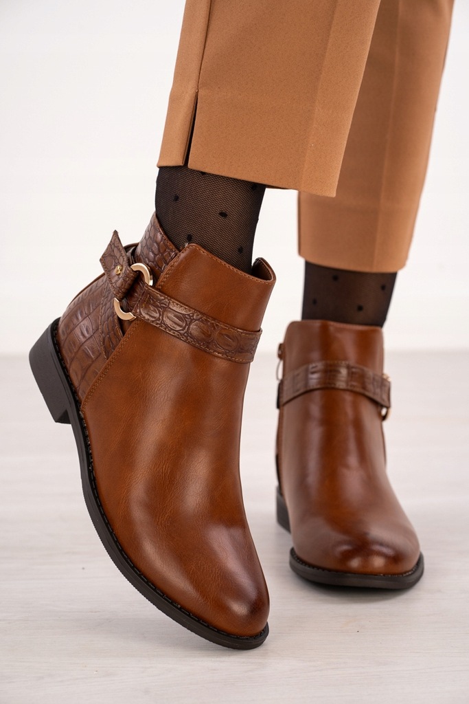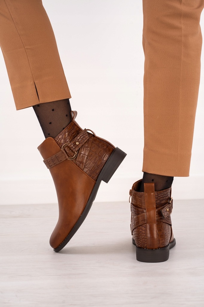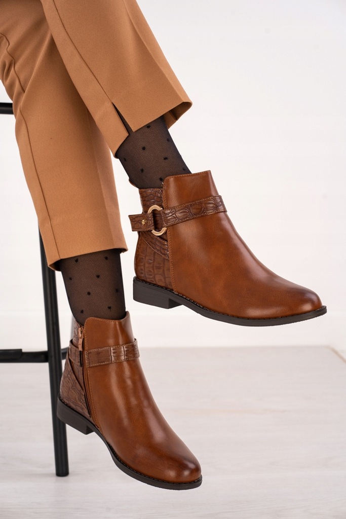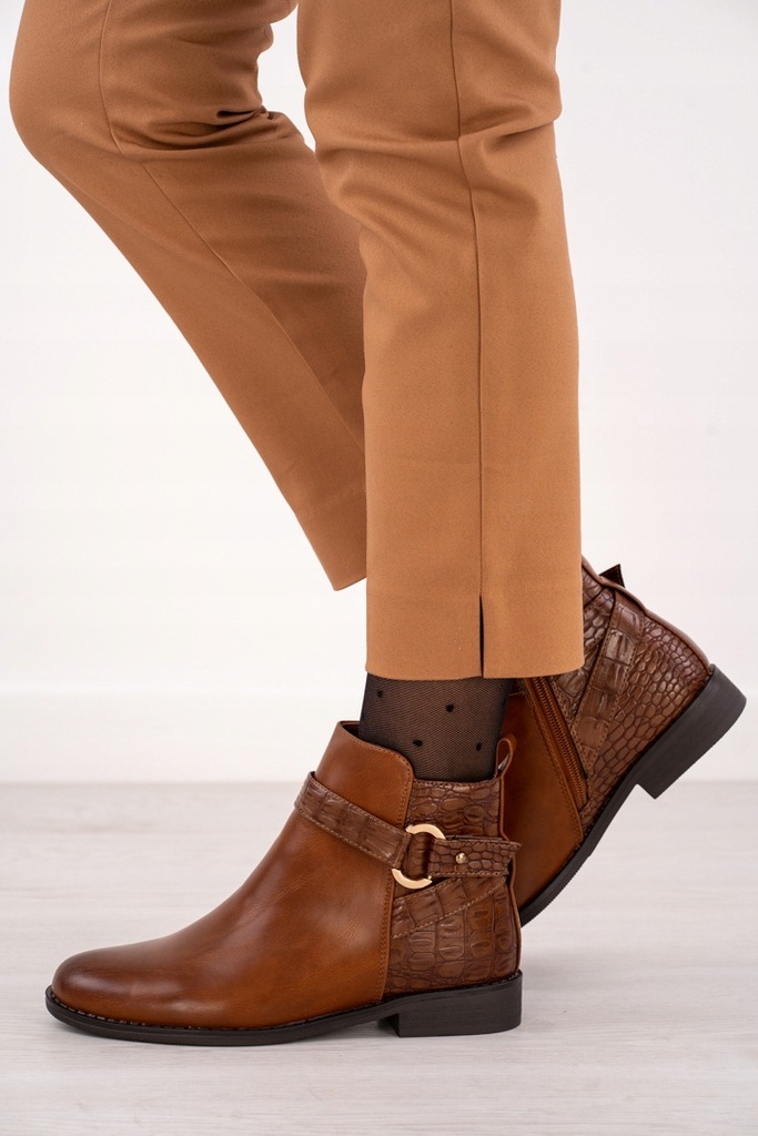 Brązowe botki sztyblety damskie na płaskim spodzie Senso