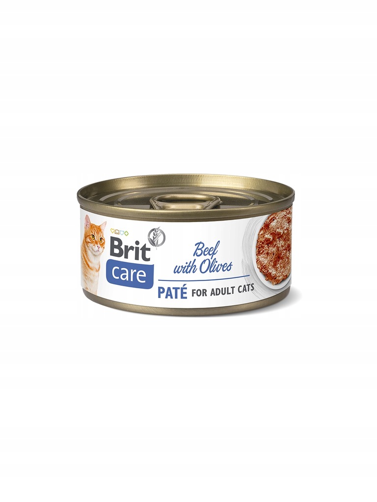 Mokra karma Brit Care to pyszny, delikatnypasztet zamknięty w wygodną do otwarcia puszkę. Składniki zawarte w karmie nie wywołują reakcji alergicznych. Połączenie wołowiny z oliwkami nie obciąża przewodu pokarmowego kota.