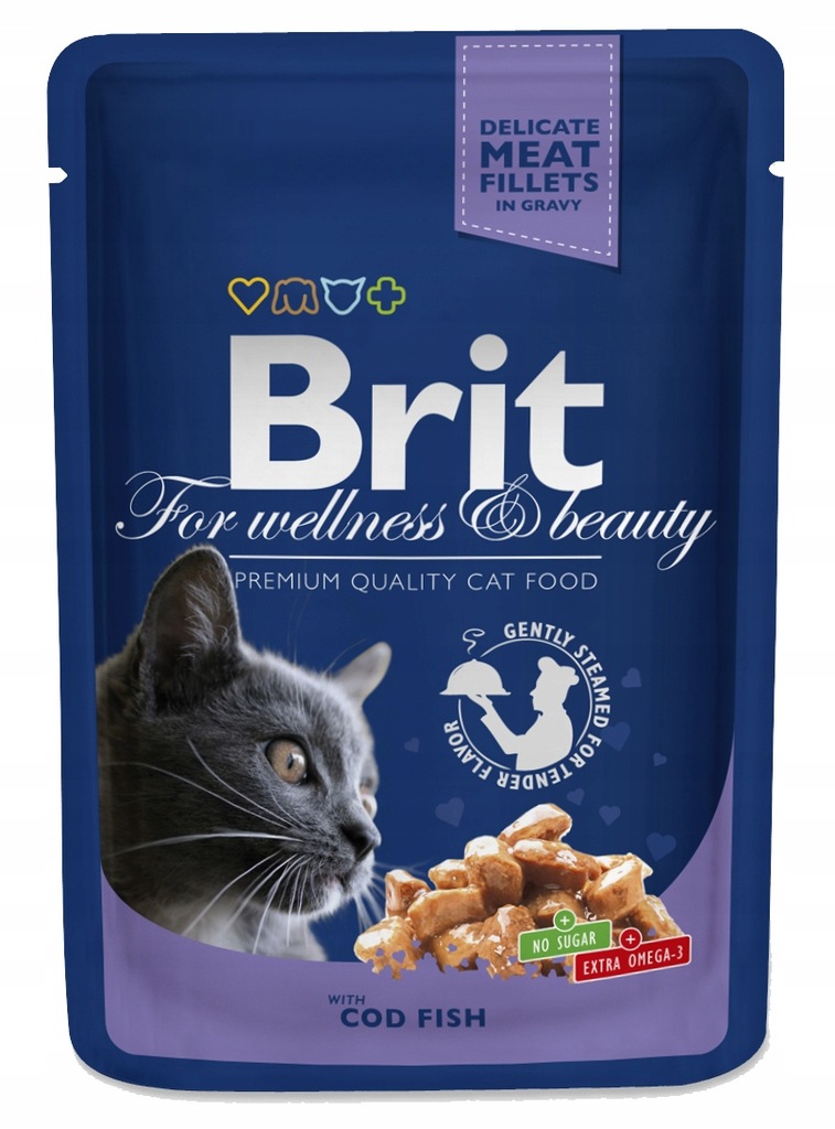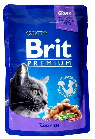 Brit Premium Pouches with Cod Fish to karma klasy premium, idealnie nadająca się dla dorosłych kotów. Pyszna i zdrowa, jest idealna dla kocich smakoszy. Dostarcza kotu wszystkich potrzebnych mu witamin i minerałów.