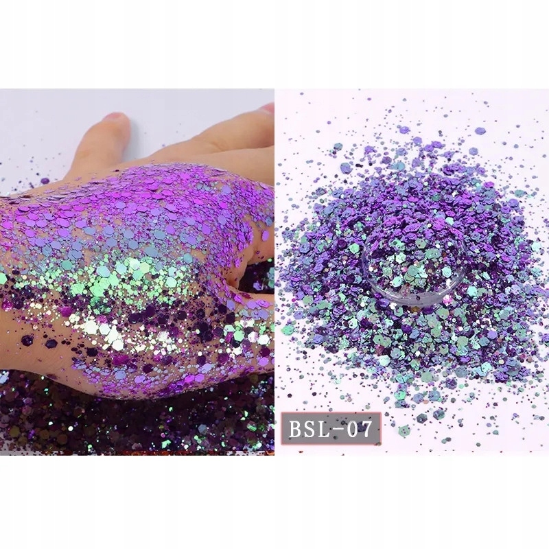 Idealny do zdobienia paznokci, dekoracji ciała, malowania twarzy, makijażu brokatowego błyszczyka, rzemiosła, produkcji bębnów, breloczków, bomb do kąpieli, ozdób świątecznych, świetnie nadaje się do użycia z żywicą epoksydową i wiele więcej. Różne wydarzenia, imprezę festiwalową, wieczorne wyjście i codzienne użytkowanie.