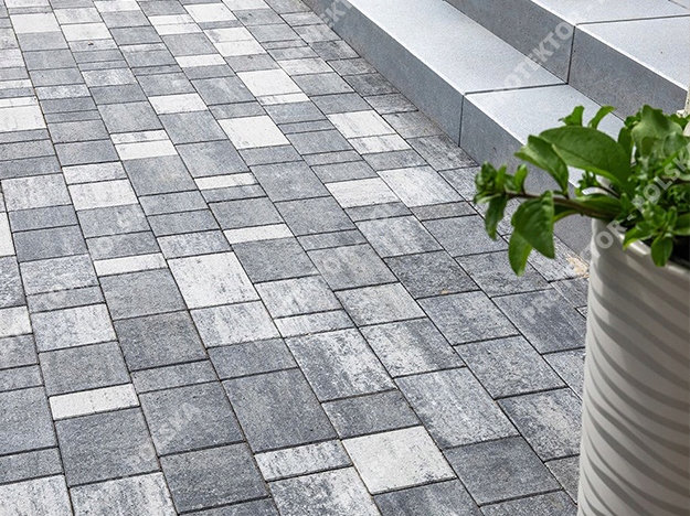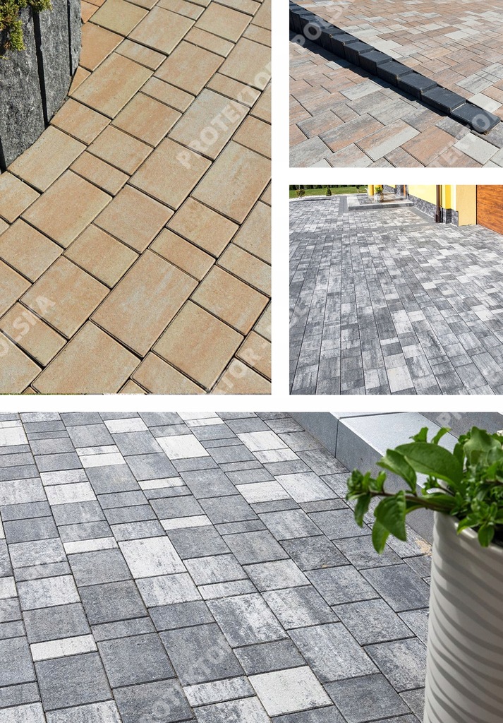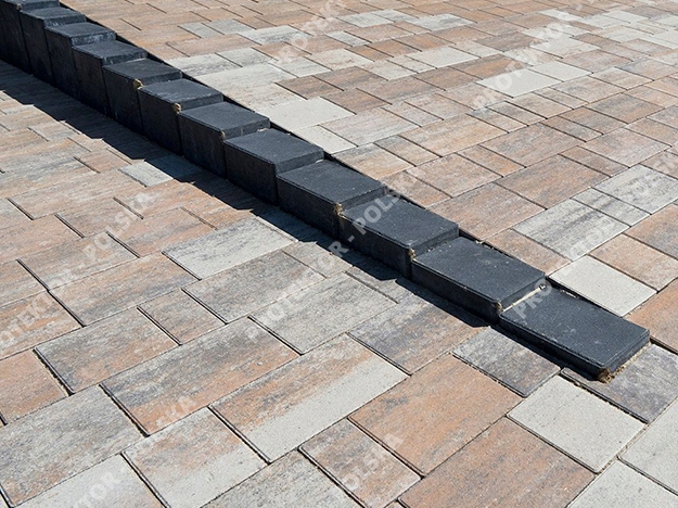 Kolory podstawowe przenikają się pasmowo na losowo wybranych elementach, a ułożona z nich nawierzchnia stanowi wyjątkowo dynamiczną kompozycję.