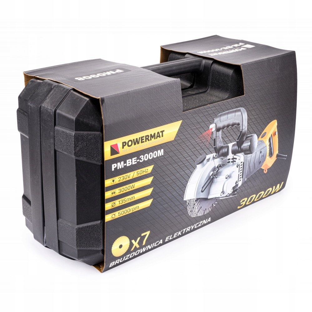 Bruzdownica elektryczna marki POWERMAT to idealne urządzenie do cięć czystych kanałów w tynku, cegle, pustaku i betonie.