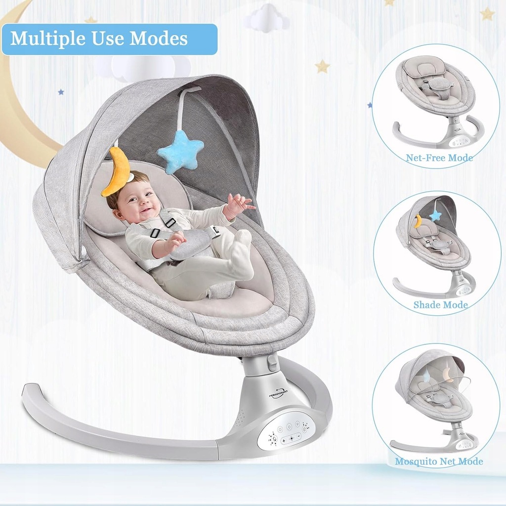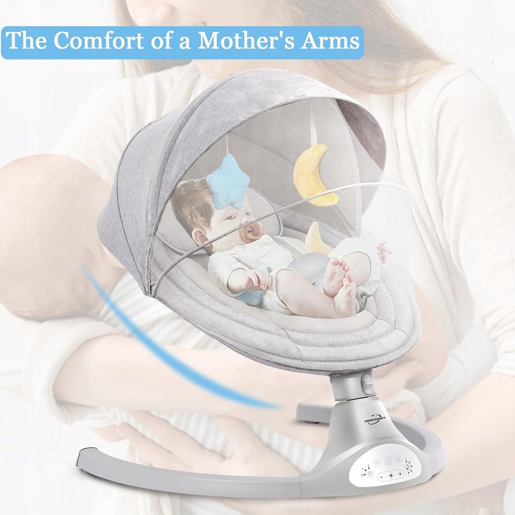 Nasz elektryczny fotel bujany dla dzieci z 5 regulowanymi kątami huśtania, w zakresie od 18° do 31°. Poziom huśtania pomiędzy każdą amplitudą został zaprojektowany tak, aby stanowił bardzo progresywną różnicę, naśladuje naturalny ruch dziecka z boku na bok. Miłość.