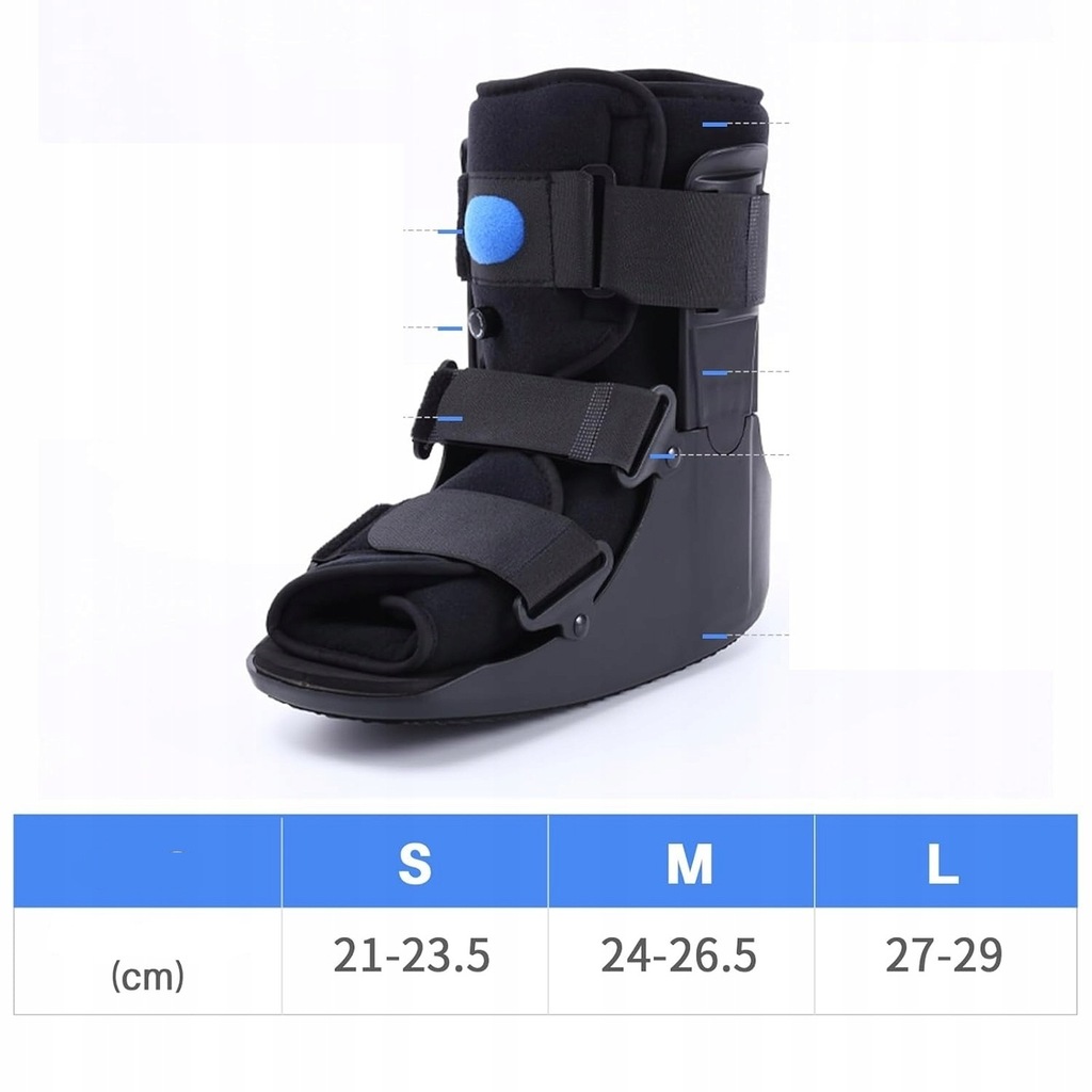 Zastosowanie - Buty są idealne na złamania zmęczeniowe stopy i kostki, skręcenie kostki, urazy tkanek miękkich, zerwanie ścięgna Achillesa i urazy, które wymagają stabilnego ustawienia stopy.