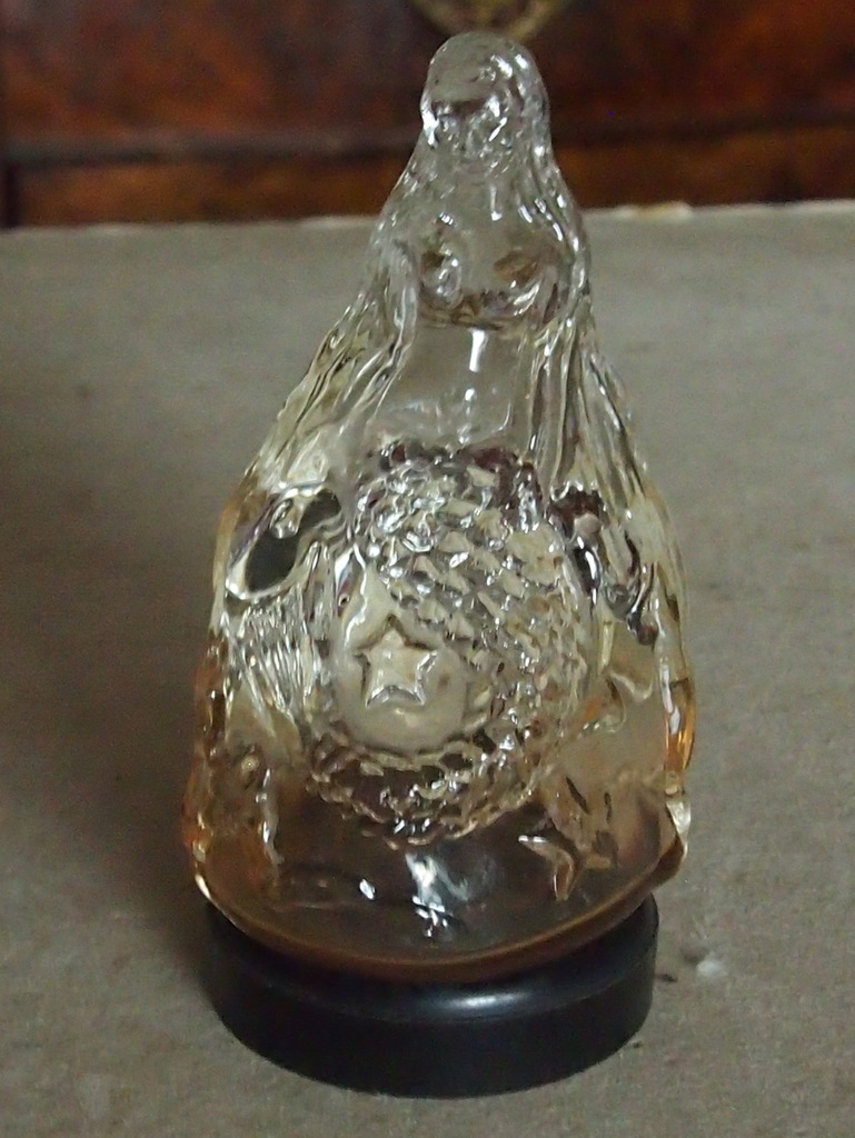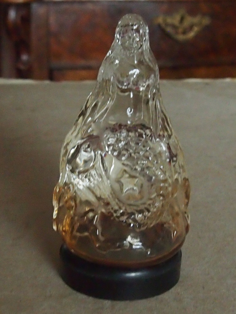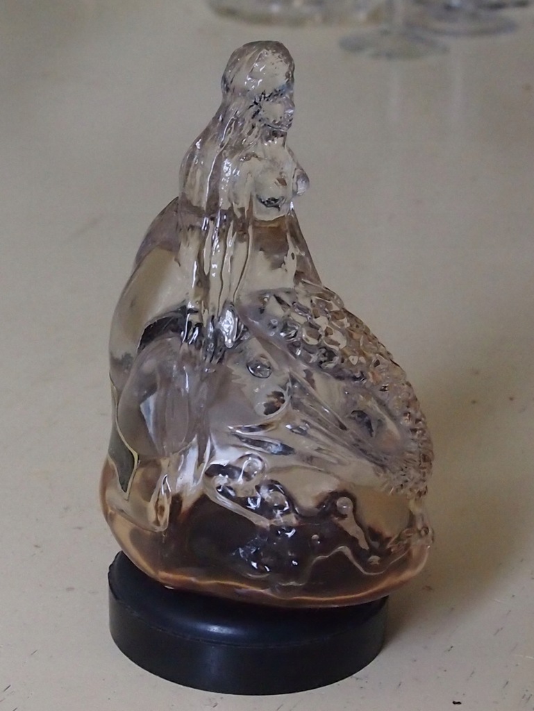 szkło w kształcie kobiety z rybą. Wewnątrz osad który należało by umyć. wys.9,5cm Zapraszam