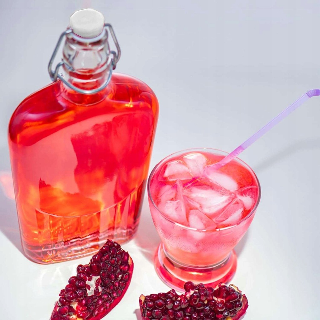 Odwracana pokrywka szklanej butelki wykonana jest z tworzywa sztucznego i silikonu, który jest szczelny, hermetyczny, dzięki czemu dłużej utrzymuje alkohol, łatwe nakrętki ręczne
