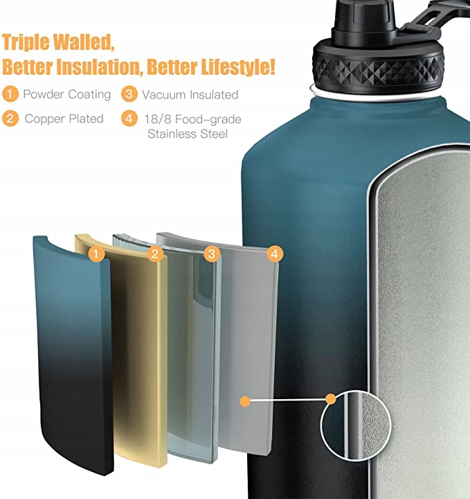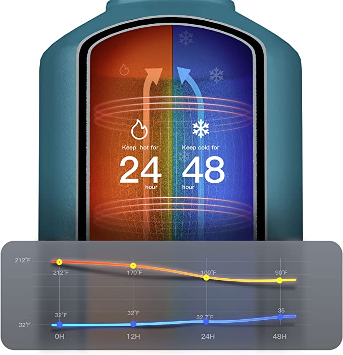 Utrzymuje ciepło dłużej: butelka na wodę ze stali nierdzewnej jest wyposażona w unikalną technologię TempArmour, która utrzymuje napoje zimne do 48 godzin i utrzymuje ciepło przez 24 godziny, dzięki czemu każdy łyk jest lodowato zimny.