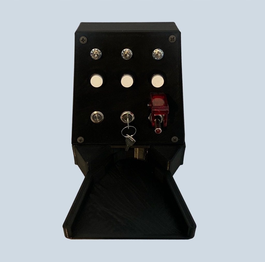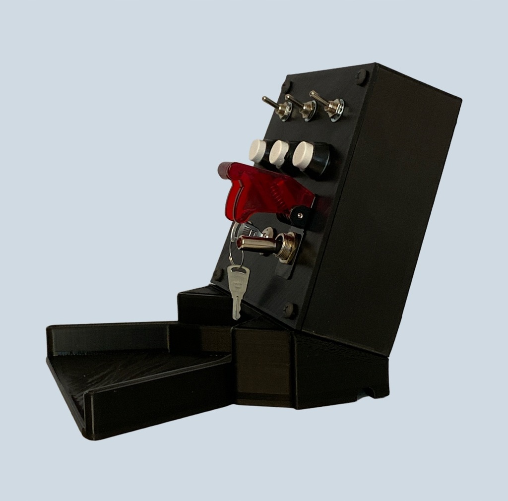 Prezentowane urządzenie stworzone jest dla osób które nie mają kokpitu, a chcą czerpać przyjemność z rozgrywki przy zachowaniu prostoty i niewielkim koszcie. Posiada przymocowaną na śruby podstawkę, przez co cała konstrukcja jest bardzo solidna. Sama podstawka jest pochylona pod kątem, przez co buttonbox jest prostszy w obsłudze i dobrze się prezentuje na naszym stanowisku.