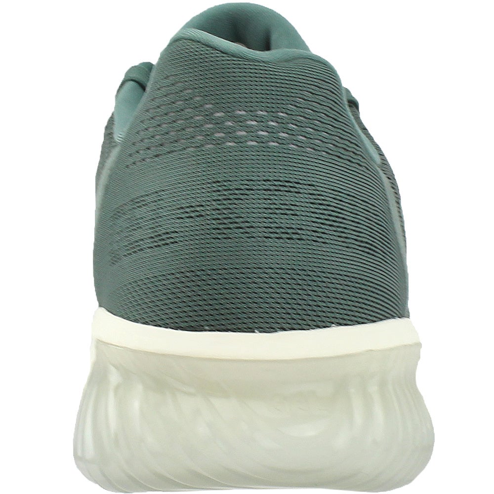 - Amortyzujący system GEL absorbuje wstrząsy podczas kontaktu pięty z podłożem, a w połączeniu z pianką EVA w podeszwie środkowej zapewnia komfort chodzenia.