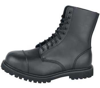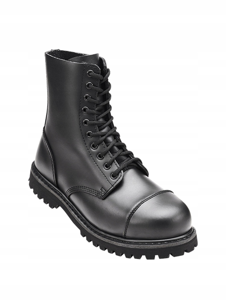 Te solidne i wygodne glany damskie i jednocześnie męskie (tzw. unisex) Brandit Phantom wykonane są z prawdziwej skóry i mają dziesięć oczek, stalową osłonę ochronną i antypoślizgową, wkręcaną i klejoną gumową podeszwę.