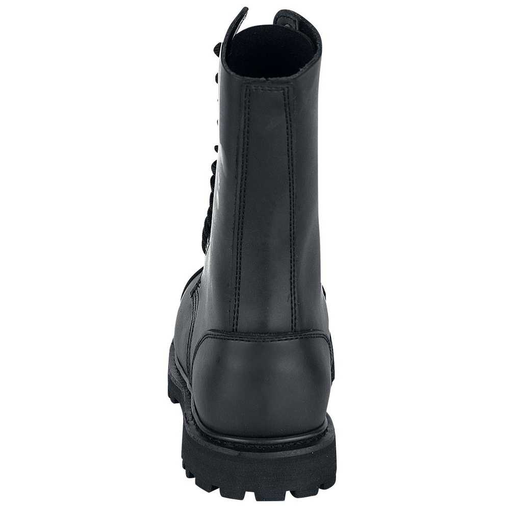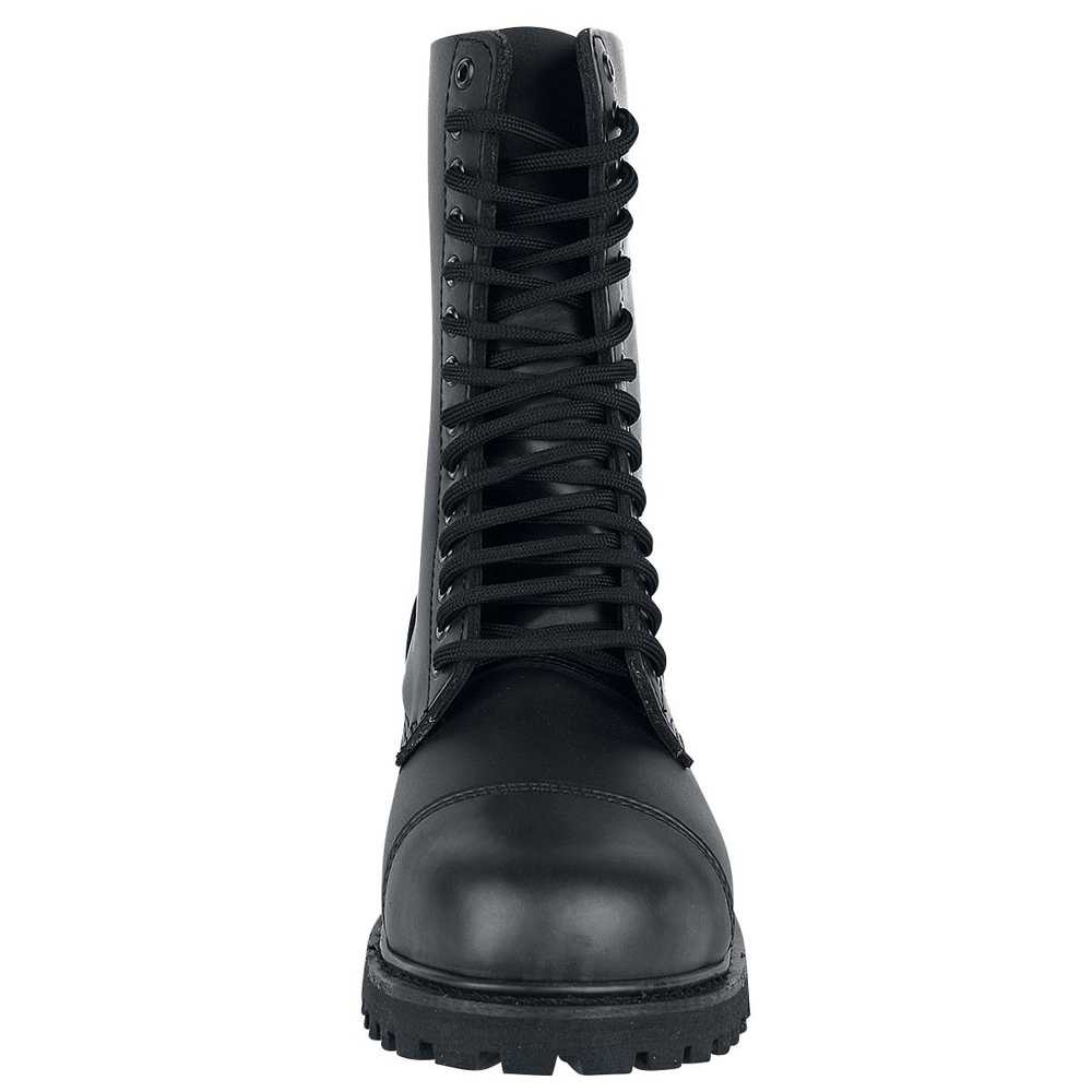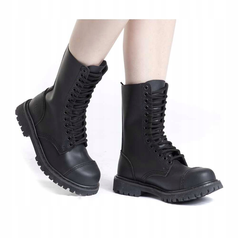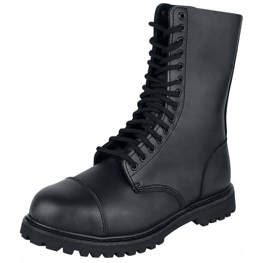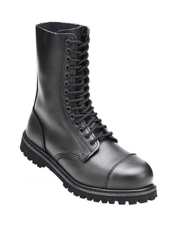Te solidne i wygodne glany damskie i jednocześnie męskie (tzw. unisex) Brandit Phantom wykonane są z prawdziwej skóry i mają dziesięć oczek, stalową osłonę ochronną i antypoślizgową, wkręcaną i klejoną gumową podeszwę.