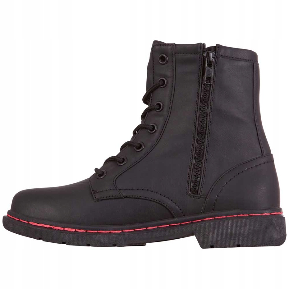 Buty damskie Kappa wzorowane na outdoorowych modelach, gwarantują komfortową ochronę stóp w zimowe dni. Wysoka, syntetyczna cholewka z przeszyciami zapewnia stabilizację i wytrzymałość w trudnych warunkach pogodowych. Wysoki kołnierz i wyściółka z delikatnego materiału. Piankowa wkładka. Klasyczne sznurowanie stabilizujące kostkę, a boczny zamek ułatwi ubieranie. Mocna, gumowa podeszwa zewnętrzna z solidnym bieżnikiem.