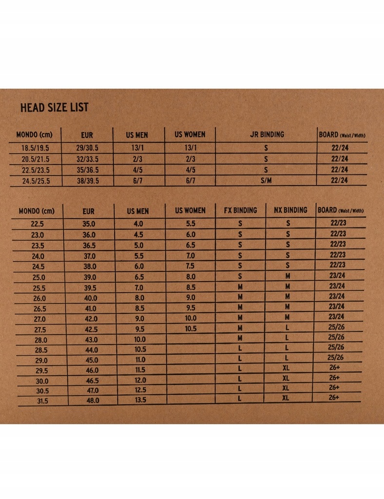 Zalecamy dobór butów snowboardowych Head o 0.5 cm większych niż realna długość stóp.