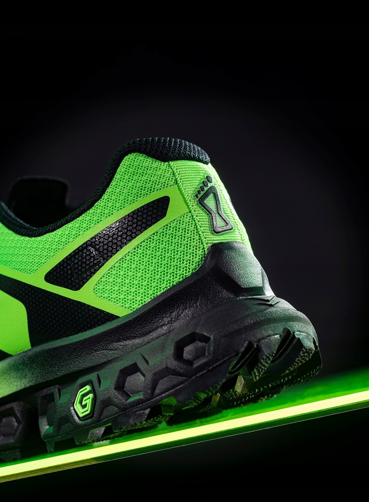 Ten but będzie się najlepiej czuł na mieszanych szlakach i leśnych ścieżkach, ale jeżeli przyjdzie Ci pokonać elementy skaliste czy betonowe - również da sobie radę. Jest odpowiednio szeroki, by pozostawić przestrzeń dla puchnących wraz z kolejnymi kilometrami stóp. Cechuje się najwyższą amortyzacją w skali Inov-8, a także doskonałą responsywnością i oddychalnością.