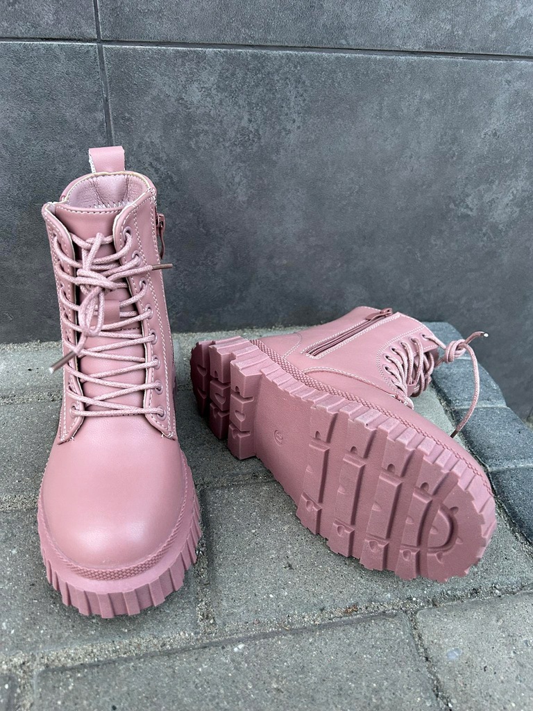 Zewnętrzna strona wykonana została z wysokiej jakości skóry ekologicznej. Wnętrze ocieplone miękkim kożuszkiem. Buty posiadają ocieploną wkładkę oraz usztywniony zapiętek.