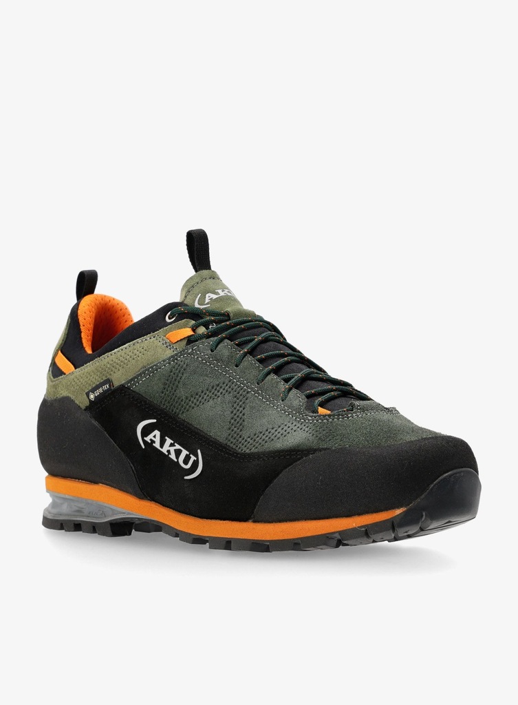 Buty trekkingowe AKU Link GTX - green/orange oferują wygodę podczas pokonywania szlaków, suchość w trakcie opadów oraz minimalistyczny design. Ten niski model posiada estetyczną cholewkę wykonaną głównie z zamszu.