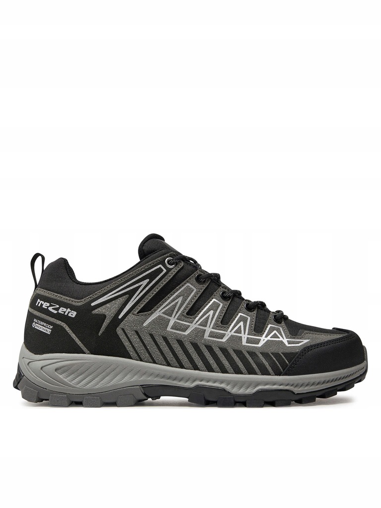 Model Thunder WP Black-Grey to męskie wodoodporne buty turystyczne przeznaczone dla entuzjastów spędzania czasu na świeżym powietrzu, poszukujących komfortu, trwałości i ochrony. Buty wyposażone w technologię Trezeta Water Stopper zapewniają doskonałą wodoodporność przy jednoczesnym zachowaniu oddychalności. Lekka konstrukcja, będąca połączeniem mikrofibry i tekstylnej cholewki, zapewnia wygodę podczas długich wędrówek. Wkładka z pianki EVA gwarantuje doskonałą amortyzację, a gumowa podeszwa zapewnia doskonałą przyczepność na różnych terenach. Idealny do lekkich wędrówek i trekkingu, but waży około 300 gramów, oferując znakomitą wydajność, jednocześnie zachowując pełen komfort użytkowania.