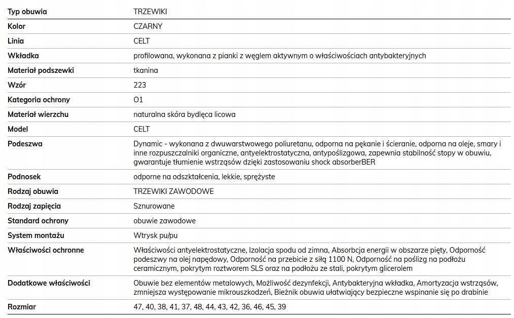 - obuwie produkowane w Polsce, przez Protektor S.A. – producenta obuwia z ponad 70-letnim doświadczeniem;