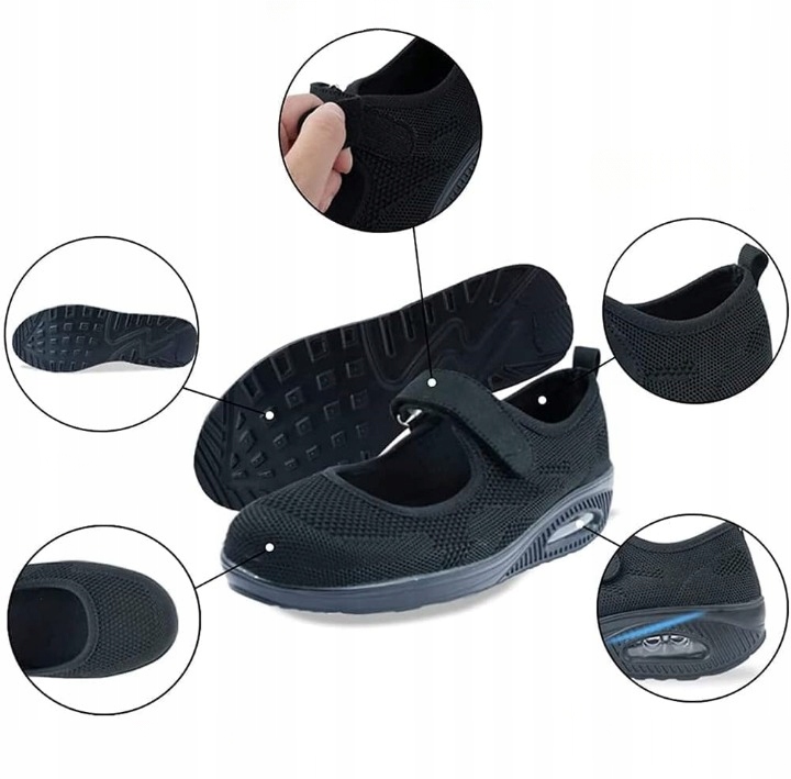 BUTY DAMSKIE ORTOPEDYCZNE CZARNE SIATECZKOWE WSUWANE R.37