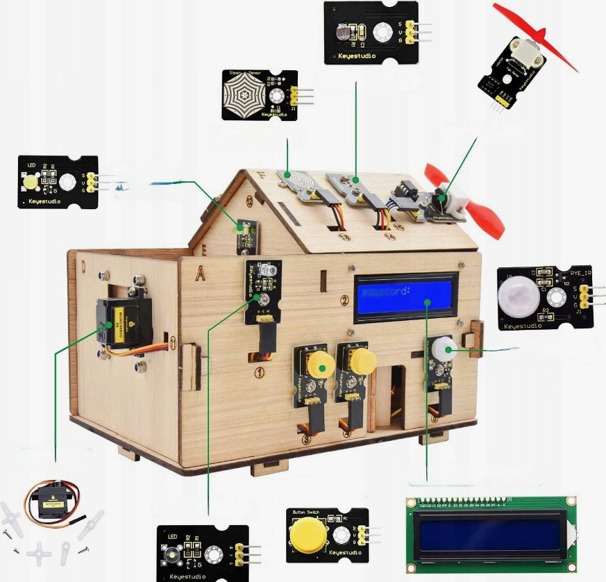 - Odkryj niesamowite możliwości zestawu Smart Home - Keyestudio DIY Kit do Arduino. Ten profesjonalny zestaw smart home pozwoli Ci stworzyć własne systemy inteligentnego domu DIY, które zapewnią Ci zarówno rozrywkę, jak i wygodę.