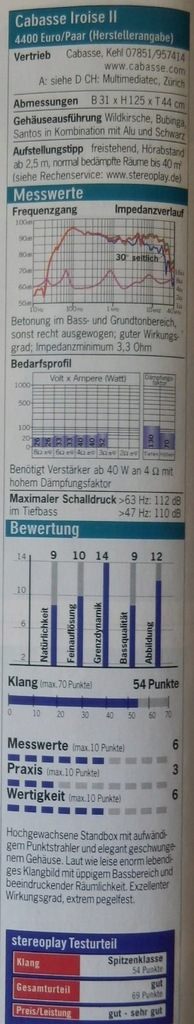 Test Iroise II zamieszczony był w niemieckim Stereoplay 11/2002 - tam kosztowały 4400 euro.