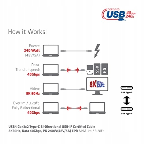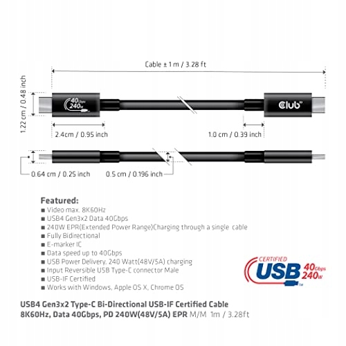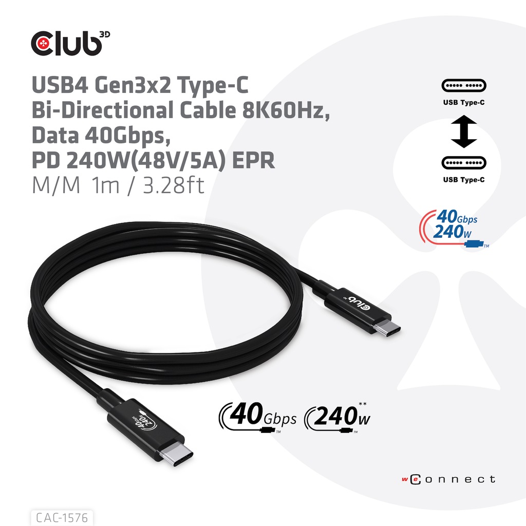 CABLE USB-C TO USB-C 1M/M/M CAC-1576 CLUB3D