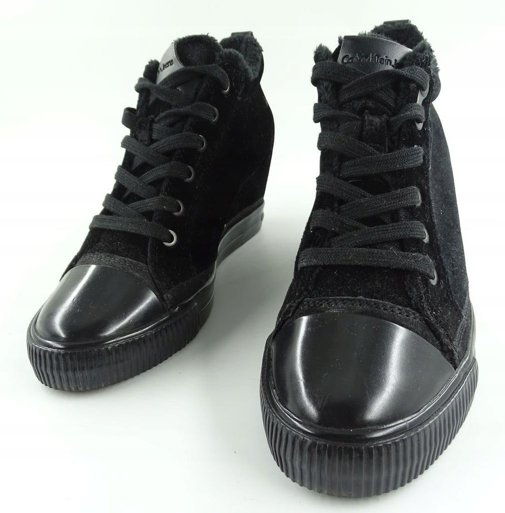 ciepłe, zimowe botki na koturnie