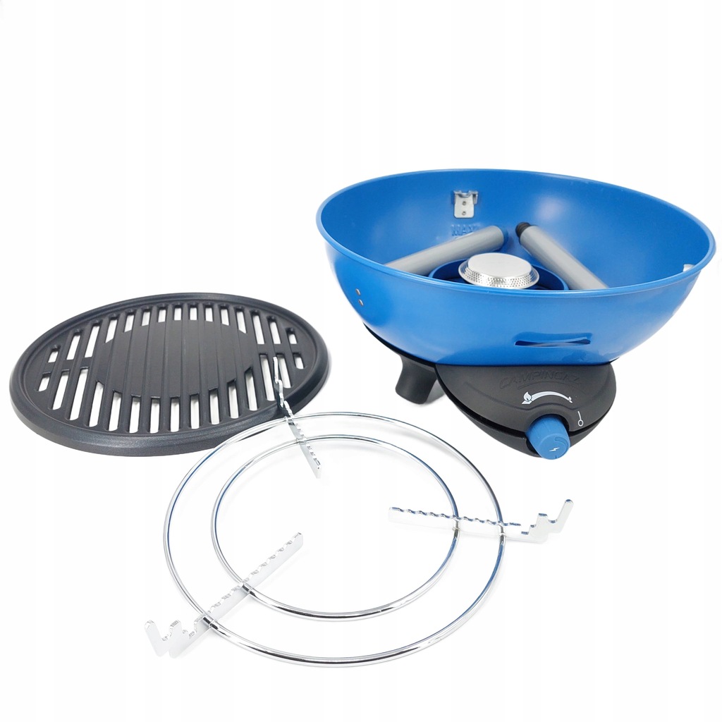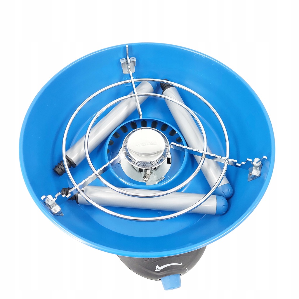 - Specyfikacje: Wymiary: średnica 32 x 33 cm (na stojaku); zużycie gazu 145 g/h; czas wrzenia 4 minuty 18 sekund; waga 2.84 kg; pokrywa transportowa w zestawie.
