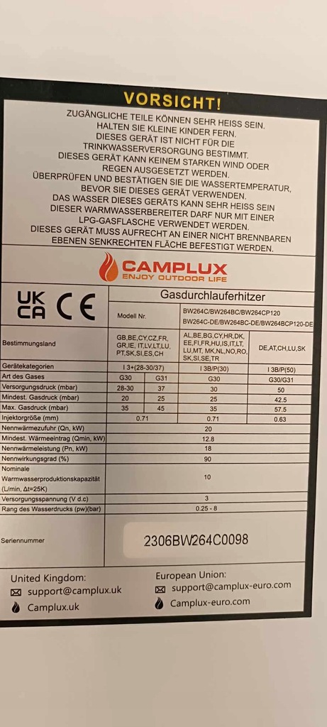 - Podgrzewacz wody Camplux AY132 to jeden z najlepszych dodatków na kemping.